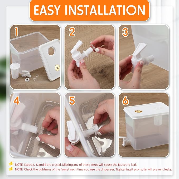- Convenient and easy to use: You will get 2 dispensers (each dispenser includes the following accessories: two faucet-specific silicone gaskets, 1 faucet valve, 1 faucet fixing bolt, 1 fruit filter filter), this plastic beverage dispenser with faucet is equipped with an easy-to-operate faucet, allowing your guests to easily enjoy their favorite drinks; in addition, the transparent plastic design makes it easy for you to determine when you need to refill a new drink;
