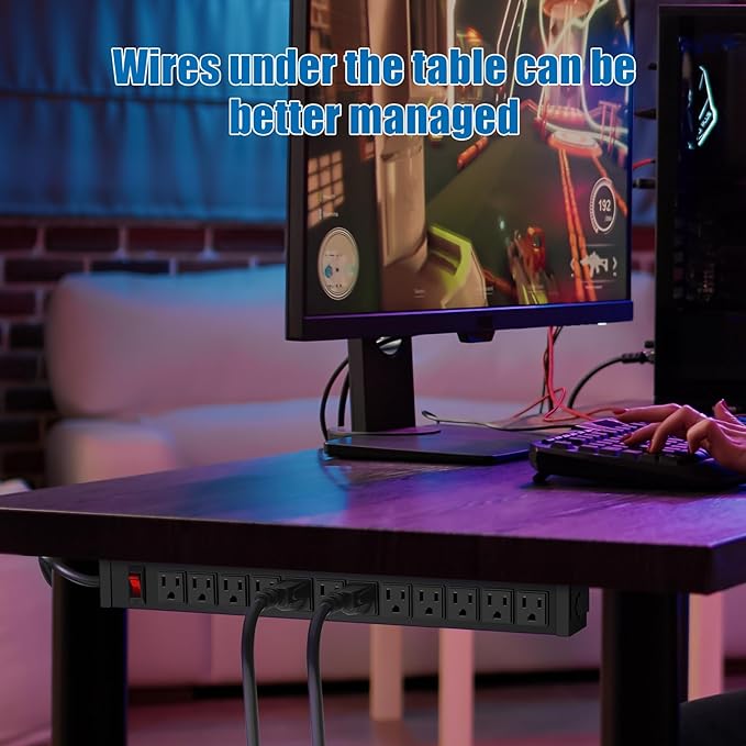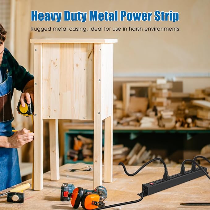- 12 Outlet Mountable Power Strip: 12 outlets for more of your needs, with a 6-foot 14AWG power cord and 15A high current, max power: 60Hz/125V/15Amp/1875W. Package includes 4 mounting screws.