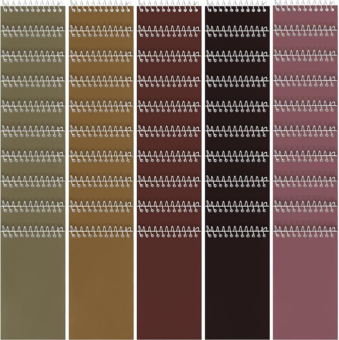 Teling 50 Pieces Spiral Memo Pads Bulk 3 x 5 Inch Small Note Pads Top Bound Lined College Ruled Paper Mini Notepad Pocket Spiral Notebooks for School Office Home Supplies, 75 Sheets (Retro Colors)