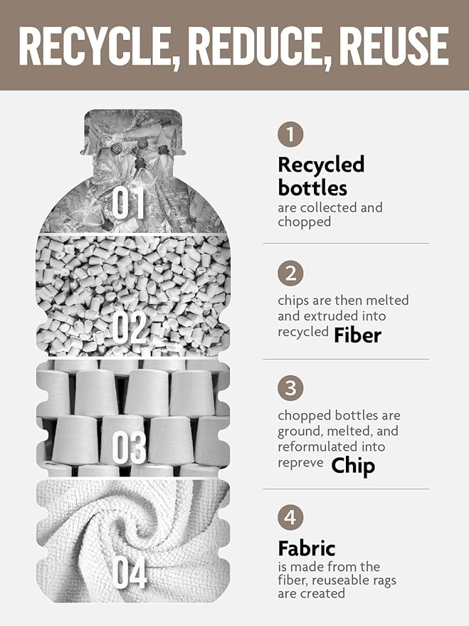 - [Alternative to Paper Towels] Designed for durability, the cloths are washable and reusable up to 50 times. The sturdy 175gsm microfiber will be a highly effective cleaning results