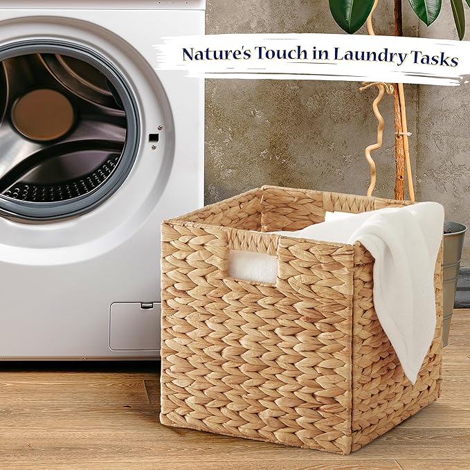 - 📦 Versatile Set of 4 for Enhanced Organization: This set of four 11x11x11 inch woven baskets offers flexibility to organize any space with ease. Perfect for holding kitchen essentials, bathroom supplies, or living room items, these baskets bring a neat and harmonious touch to your home, combining style and practicality.