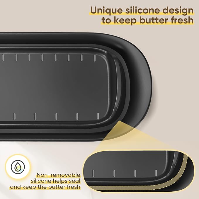 - 【DURABLE, STURDY & SAFE】Our Butter Dish will quietly stay in place thanks to soft rubber feet, and the durable plastic is light yet won’t get shattered by a curious cat like a ceramic dish would. Made with BPA-free plastic and dishwasher safe, cleaning has never been more convenient.