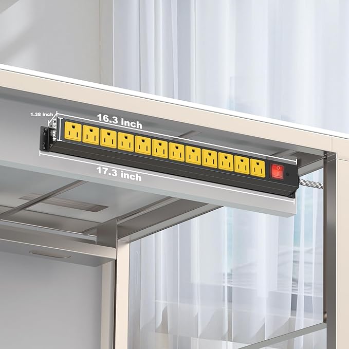 12 Outlet Heavy Duty Power Strip with 15A Circuit Breaker,Metal Wall Mount Power Strip for Garage Workshop Industrial 1200J 15A 125V 1875W 6ft Cord