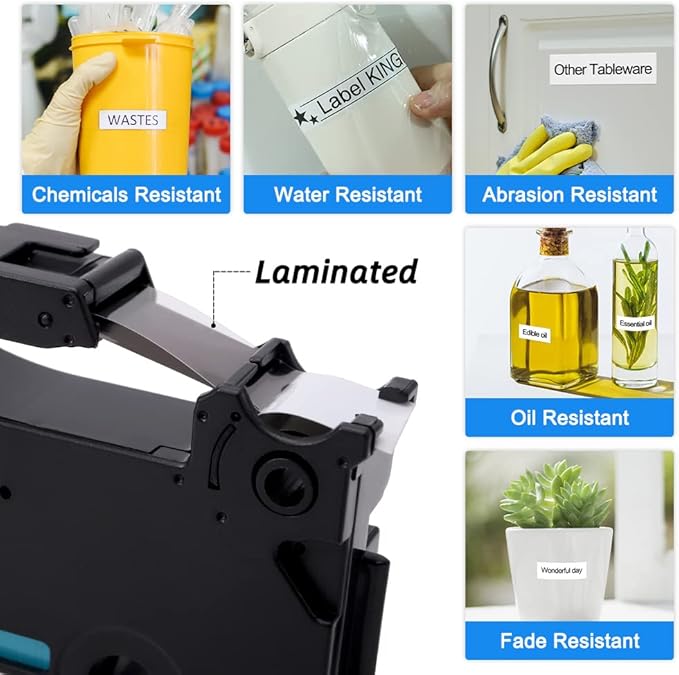 - Split back design makes it easy to peel off the backing replacement for brother tze-221 p touch 9mm label tape 3/8 Inch black on white Tape. Folding the back of the tape is beneficial for removing the backing.