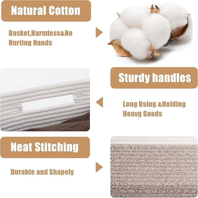 - Multipurpose Woven Basket: Say goodbye to cluttered closets with our versatile basket set. These rope baskets for storage are designed to fit perfectly on shelves, closets, and even under beds. An ideal solution for organizing your home or office