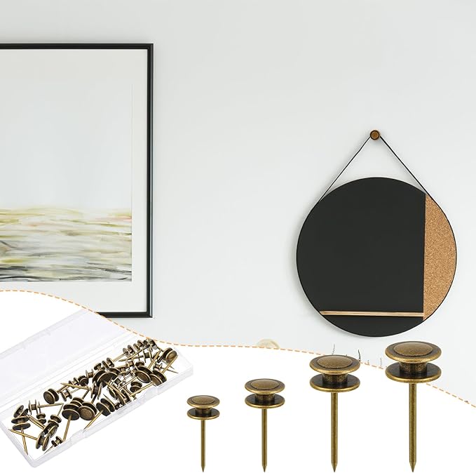 Ferraycle 40 Piece Double Headed Picture Hangers Nails 4 Size Long Thumb Tacks for Wall Hanging Decorative Nails Push Pins Picture Hooks for Drywall Photo Decor, 10/20/ 30/ 50lb(Bronze)