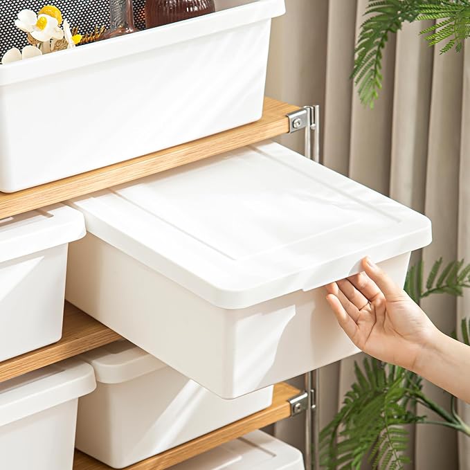 15 Quart White Storage Bins with lids,Office stackable Plastic Boxes Set of 4,Garage organization Storage Box with handle for Organizing Snacks, Crafts, Legos, Tools,books (white, 4L)