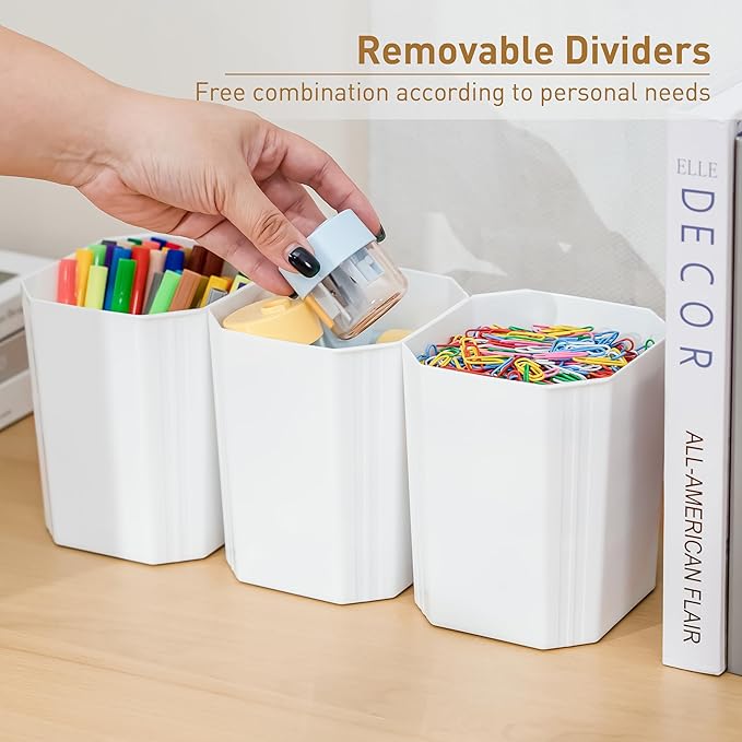 - 【6 Detachable Tall Inserts】These inserts help separate a bin into multiple organized sections. This prevents the items from moving around and getting mixed up in a container. Can also be used in drawers and desktops;