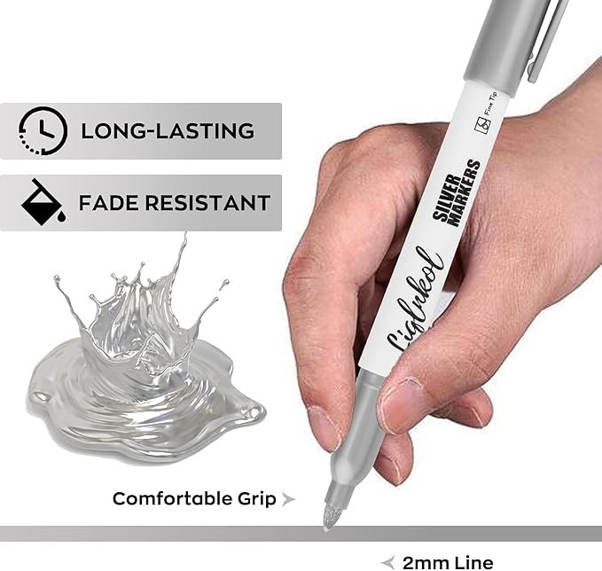 - Smooth writing and quick drying : Fast drying, opaque, fade proof silver metallic marker with fast drying pigment ink that wonβt fade.Easily mark light and dark surfaces with the bright, highly visible metallic finish of these silver marker.