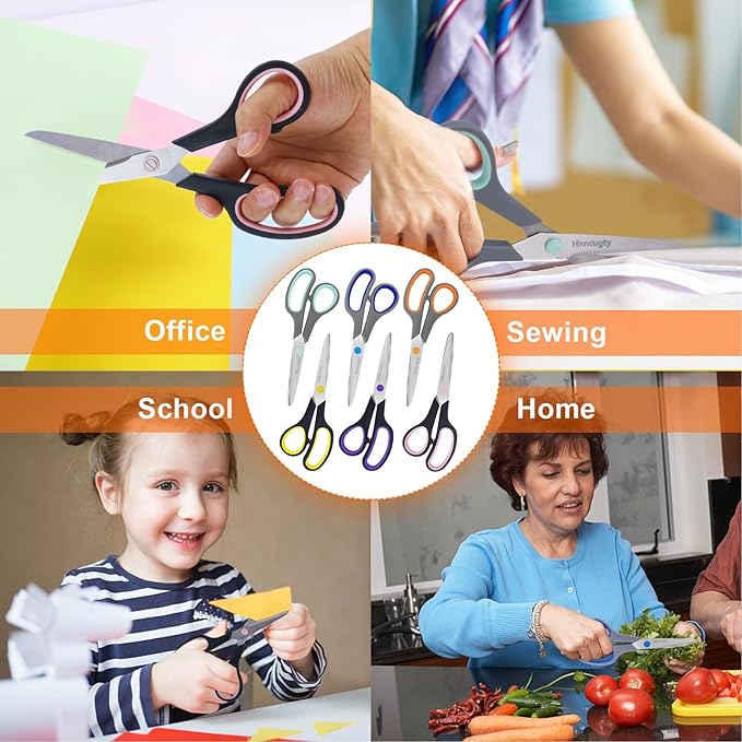 - 6 Pairs Scissors All Purpose: Heavy duty scissors, Stainless steel sharp scissors are designed for all your cutting needs. Suitable for office scissors, school scissors, teacher scissors, classroom scissors, students scissors, sewing scissors, craft scissors, fabric scissors, left handed scissors, older kids scissors, adult scissors, household scissors, garden scissors, craft shears, craft supplies, scissors for office, scissors for school.