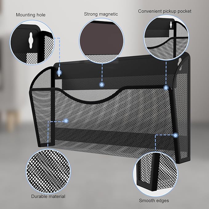 - 【Versatile Design】The magnetic file organizer is made of high-quality metal wire mesh material, ensuring sturdy and durable quality. Its sturdy construction allows for easy attachment to filing cabinets, offering a convenient storage solution for numerous papers and documents. Whether you need it for your home or office, this Magnetic File Holder for File Cabinets is designed to meet your needs.