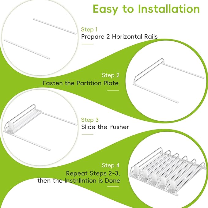 - 【Automatic Drink Propeller】The refrigerator drink organizer pusher can keep the beverage cans always in the front position, saves your space and ensures orderly storage and easy access to your drinks