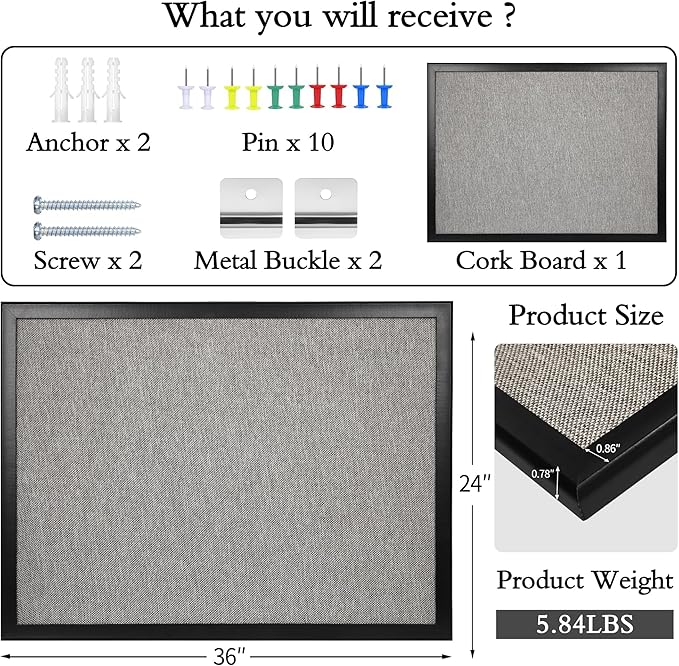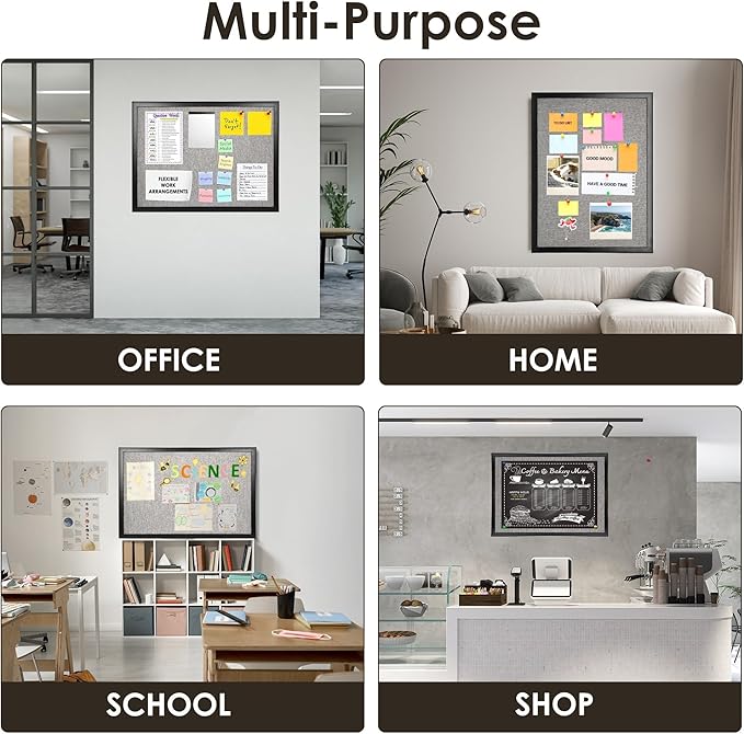 - Sturdy & Elegant Frame -- Our bulletin board comes with solid wooden frame, durable and good looking. No worry about warp or distortion. The elegant frame adds a smooth touch, enhancing your experience. With a clean and contemporary design, our memo board can fit your office and home decor well.