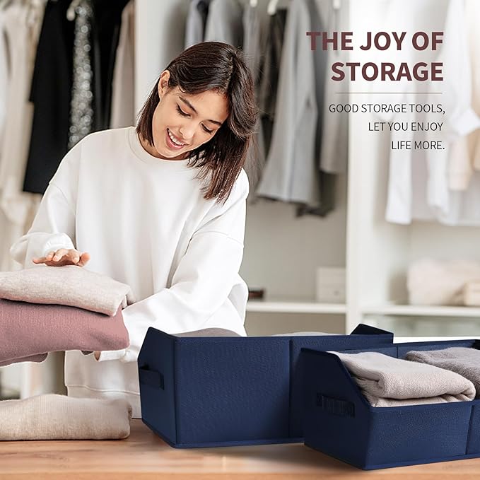 Clothes Organizers and Storage - Fabric Storage Bins with Handles, Storage Baskets for Organizing, Trapezoid Storage Cubes for Blankets, Towels, Office, 6 Pack, Navy Blue