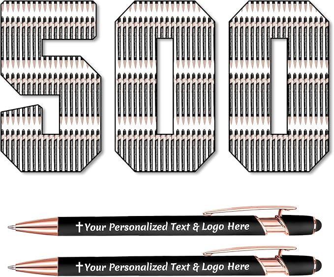 STREADVE 500 Personalized Custom Pens Engraved Writing Pen with Name Logo, Customized Promotional Items Stylus Pen Gifts for Men Women Realtor Nurse Wedding Business, Black
