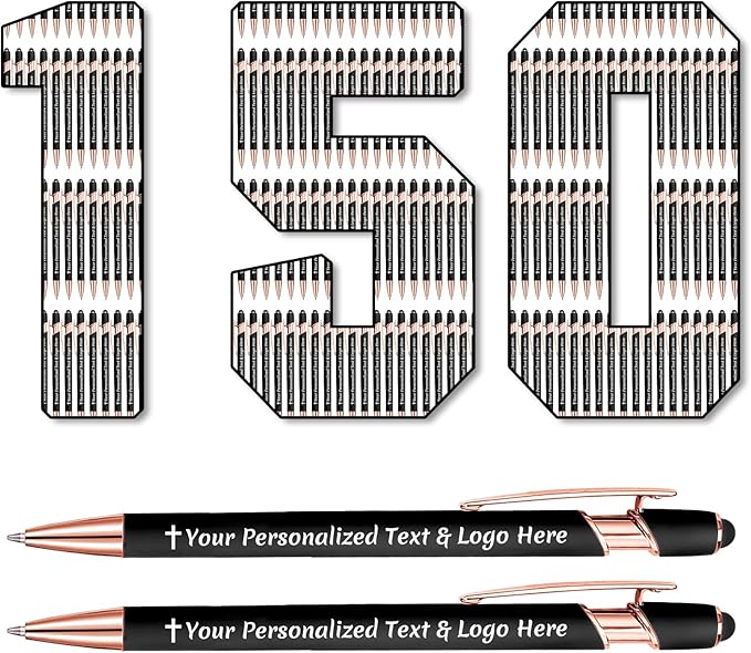 STREADVE 150 Personalized Custom Pens Engraved Writing Pen with Name Logo, Customized Promotional Items Stylus Pen Gifts for Men Women Realtor Nurse Wedding Business, Black