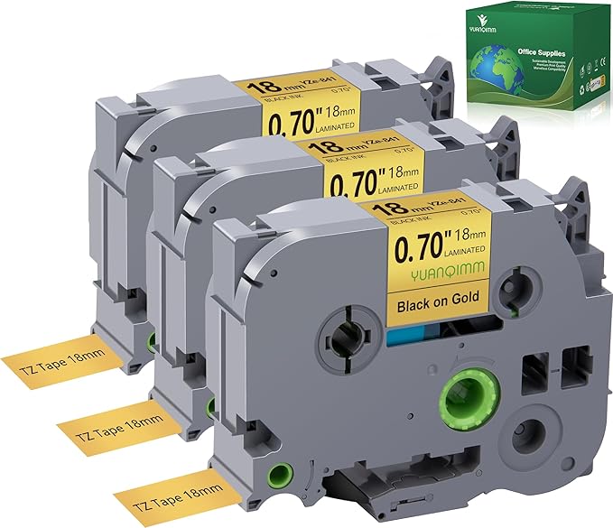 - Package included: 3-Pack Compatible with Brother PTouch TZe-841 TZ-841 TZe841 TZ841 18mm 0.7 Inch Black on Gold Label Maker tape