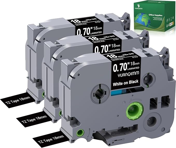 - Package included: 3-Pack Compatible with Brother PTouch TZe-345 TZ-345 TZe345 TZ345 18mm 0.7 Inch White on Black Label Maker tape