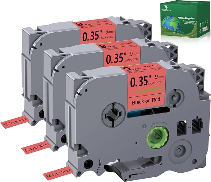 - Package included: 3-Pack Compatible with Brother PTouch TZe-421 TZ-421 TZe421 TZ421 9mm 0.35 Inch Black on Red Label Maker tape