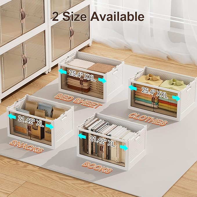 - [Foldable & Translucent] The foldable design provides more convenience. When you're not using these storage bins, you can fold them up and store them, saving more space. The translucent design of the storage box makes it easy to identify the contents of the storage box without opening it