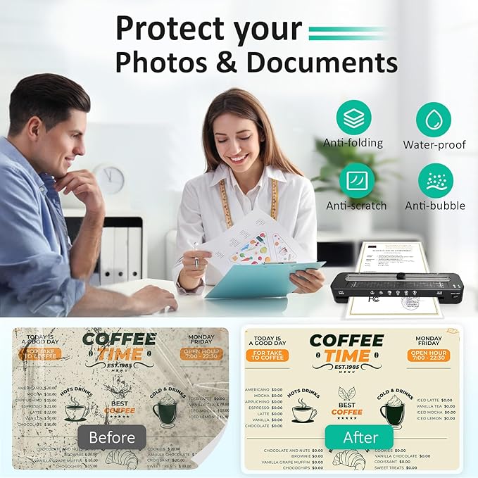- Warm-Up for Fast Laminating: A3 laminator machine with laminating sheets heats up in just 95 seconds, allowing you to start laminating instantly. Meet different requirements with faster speed of 355mm/min, which can better improve your work efficiency. Take your projects to the next level and revolutionize your laminating experience.