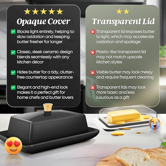 - Pure and Safe: Crafted from contaminant-free black porcelain, this European butter dish ensures your butter is not just stored but preserved in a wholesome manner