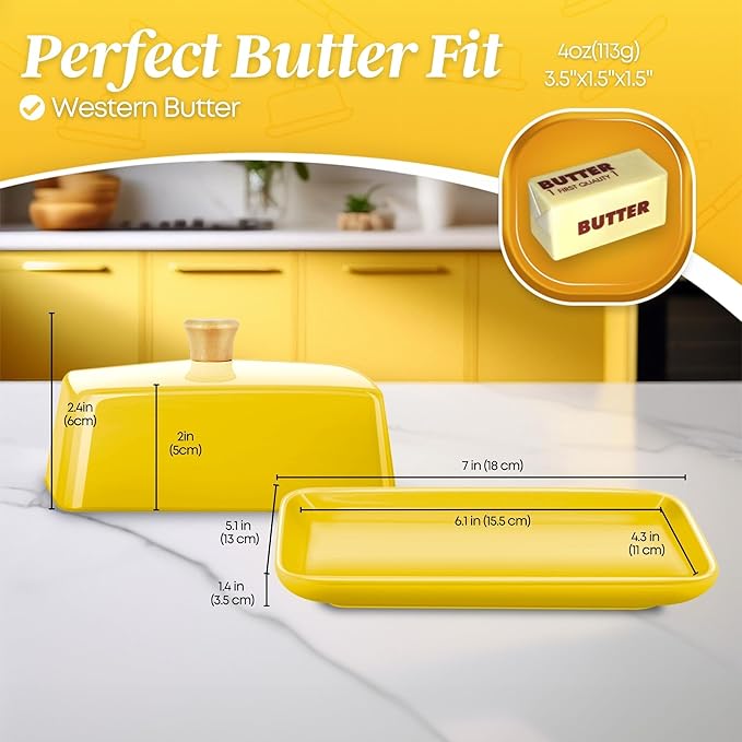 - Stylish and Practical: Unveil the blend of European elegance and functionality with Flexzion's porcelain yellow butter dish so that you can serve and store it in style