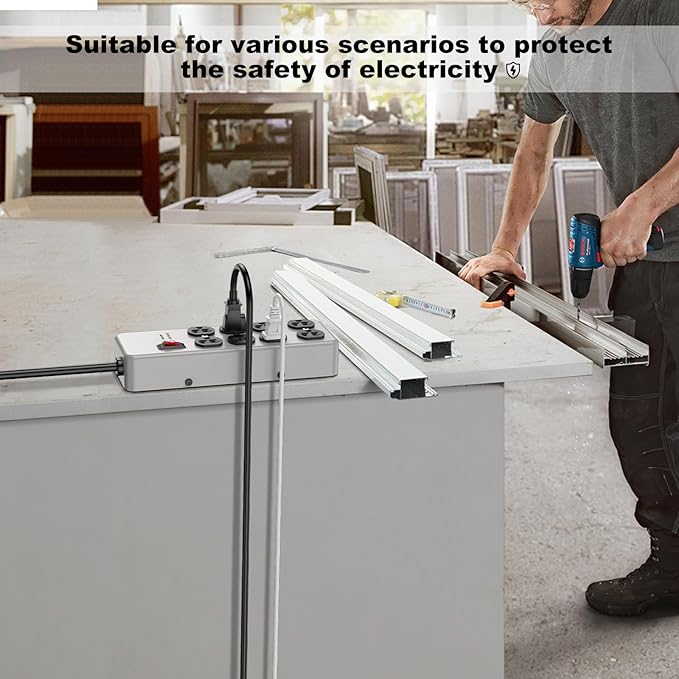 - Safety Features: With a built-in 4800J surge protector and a 20A circuit breaker, this power strip offers comprehensive protection against short circuits, overcurrent, overheating, and overvoltage. If the current surpasses 20A, the circuit breaker automatically shuts off power to prevent damage, and it’s easily reset by turning off the power and pressing the reset switch.