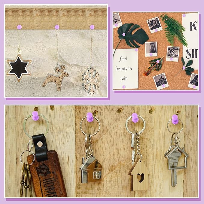 220 Count Purple Push Pins Standard Plastic Head Steel Point Thumb Tacks Decorative Push Pins for Cork Board Wall Hanging Bulletin Board