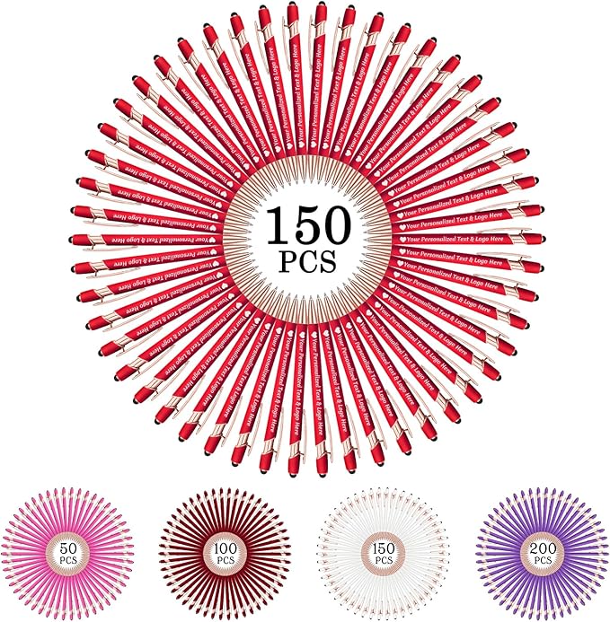 STREADVE 150 Personalized Custom Pens Engraved Writing Pen with Name Logo, Customized Promotional Items Stylus Pen Gifts for Women Realtor Reunion Wedding Business, Red