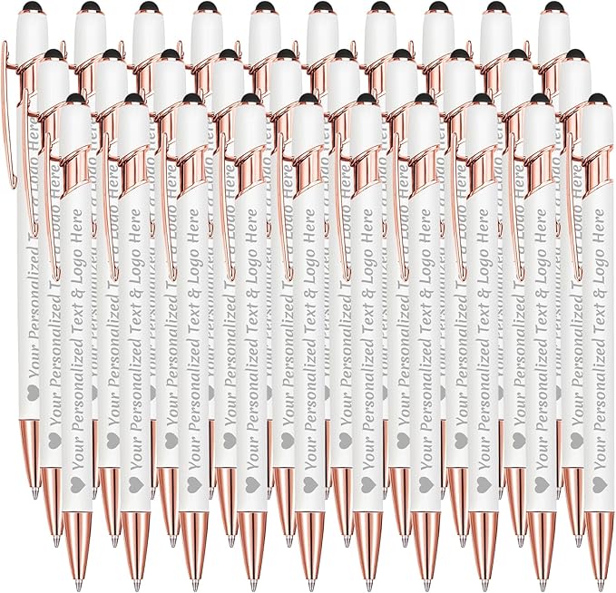 STREADVE Personalized Custom Pens 30 Engraved Writing Pen with Name Logo, Customized Promotional Items Stylus Pen Gifts for Communion Wedding Men Women Realtor Business, White