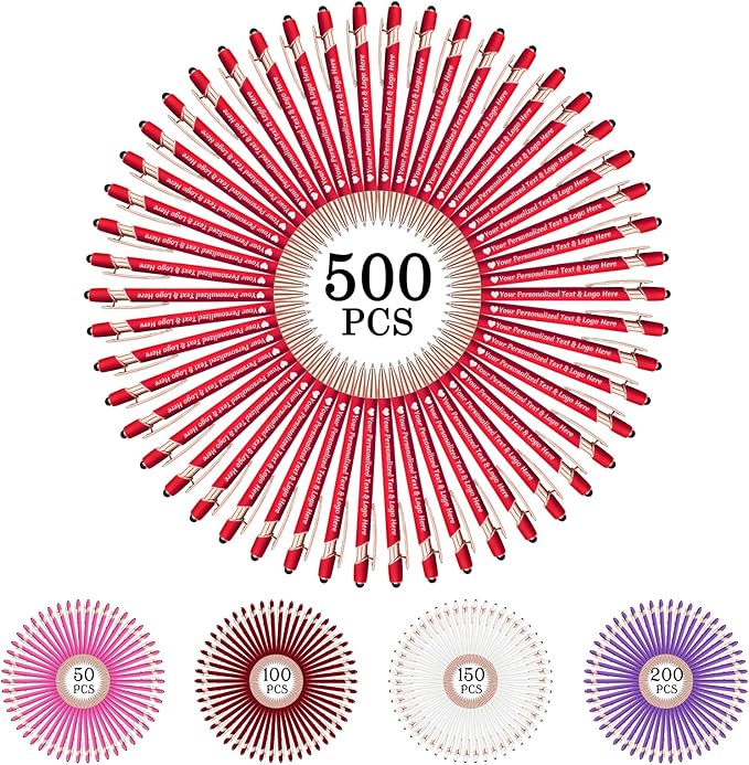 STREADVE 500 Personalized Custom Pens Engraved Writing Pen with Name Logo, Customized Promotional Items Stylus Pen Gifts for Women Realtor Reunion Wedding Business, Red