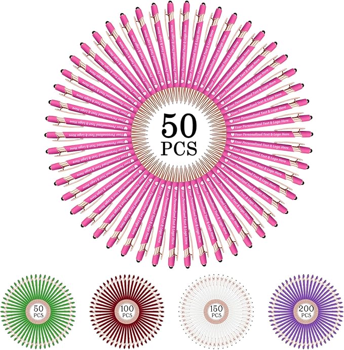STREADVE 50 Personalized Custom Pens Engraved Writing Pen with Name Logo, Customized Promotional Items Stylus Pen Gifts for Women Realtor Quinceañera Wedding Business, Pink