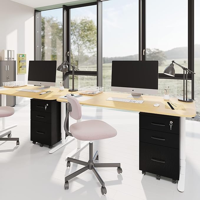 File Cabinet with Lock,3 Drawer Wood Rolling Filing Cabinets Under Desk for Home Office, Office Storage Cabinet fits Letter/A4 Size,Mobile Filing Cabinet Printer Stand,Black