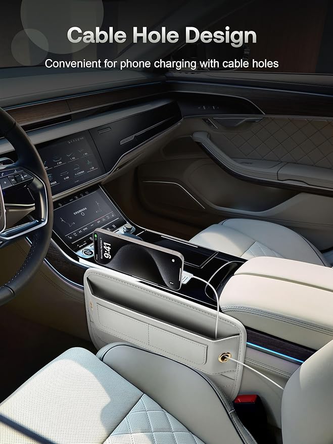 - Stylish Leather Craftsmanship – Elevate your interior with our premium leather gap filler. Meticulously stitched, it oozes luxury with a sleek, reversible design that complements any car decor, creating a chic hideaway for small items.