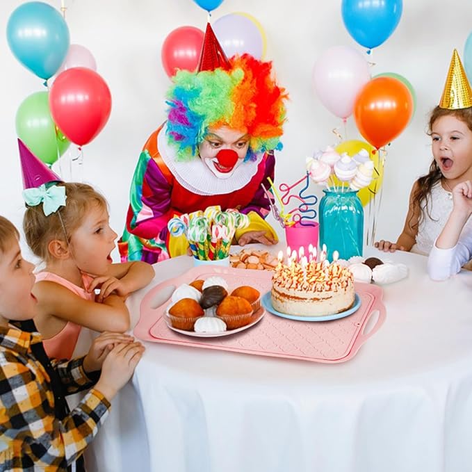 LEHAHA Melamine Serving Tray with Handles, 17.25 x 12 Inch Aesthetic Serving Platters and Trays with Curved Sides, Tray for Lunch, Coffee, or Breakfast, 4pcs Set, Silicone placemats Included,Pink