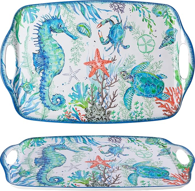 - BEAUTIFUL COASTAL DESIGN: Unique sea turtle, seahorse and crabs designs splashes across the surface, and subtle hammer textures makes the marine life is vivid , great for indoor outdoor use