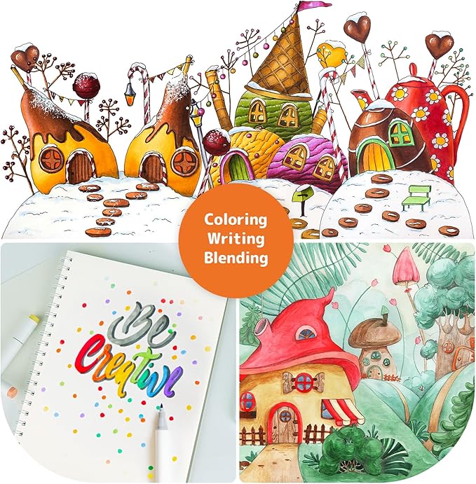 - 🎨THOUGHTFUL HUMANISED DETAIL: Art markers come with a non - bleeding pad to prevent ink bleeding. A 4 - divider storage keeps the markers upright and in place, making it easier to organize. The ergonomic design provides a comfortable and soft grip, making it less tiring to hold. Alcohol markers with uniquely color - coded caps make color identification and organization easy. What's more, the cap can be placed on the other end of the marker, so it's not easy to lose, and the small raised design prevents it from slipping. (NOTE: Like all other brand alcohol - based markers, they will bleed through regular coloring paper, except very thick paper or marker paper.)