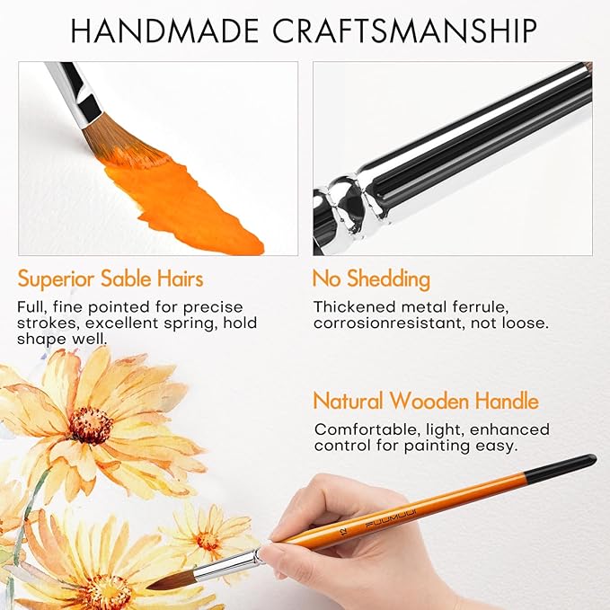 - Consistent Flow Control - Superior Kolinsky sable hairs have great liquid holding capacity and ensure smooth paint flow; the color flows evenly and consistently from the point with enough color carry capacity within the belly of the brush to lay down a flowing gestural stoke of colour, soft and smooth sable hair gives you spring back and be able to hold its shape.