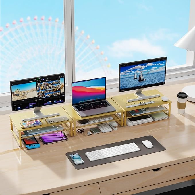gianotter 2-Tier Metal Monitor Stand Riser, Desk Organizer for Monitor, Office Desk Storage Organizer for Office Supplies (Gold)