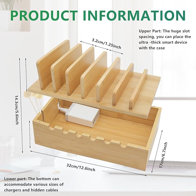 - ➤【Suitable for Multiple Scenes】- The charging station is practical with great storage and organizing capability. It is suitable to be used in office desktop, meeting room, living room, hotel and bedroom. It's not only elegant designed, but also create a secured use environment while charging.