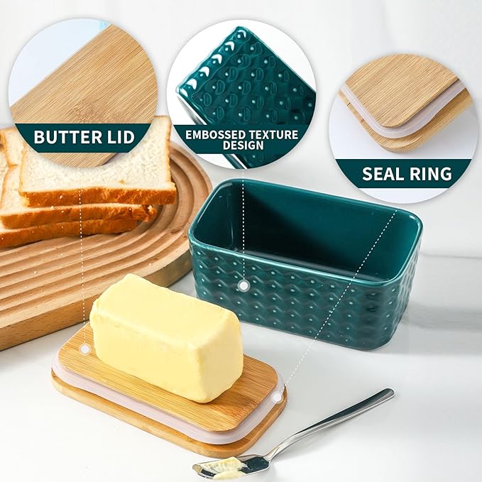 - Unique Embossed Texture Design: The ceramic butter dish for countertop with fancy embossed pattern adds fashion to your kitchen and makes you enjoyable dining time. This wide butter dish with lid combines functionality with attractive aesthetics