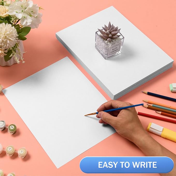 MixTeach 100 Sheets White Cardstock 8.5 x 11 Inch Thick Cardstock Paper, 250gsm/92lb Double Sided White Card Stock Printer Paper for Cards Making, Crafts, Scrapbook, Invitations, Drawing, Printing