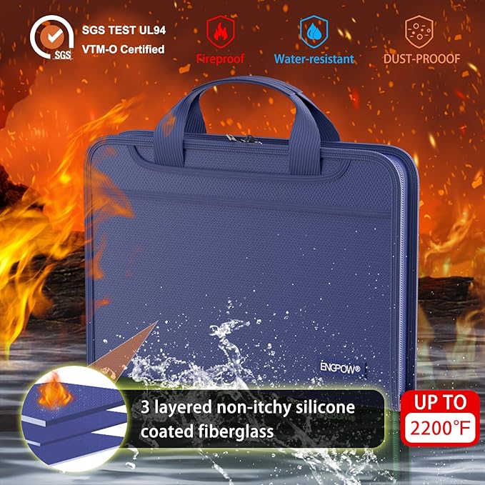 - High-Quality Materials: Protect your files with ENGPOW fireproof accordion file organizer.It is made of 3-layered non-itchy silicone-coated fiberglass which withstand the temperature up to 2200℉.It has been passed by SGS TEST(UL94 VTM-0 Certified).Fireproof File Folder is fireproof&Water-resistant,which can effectively protect your important documents in a fire,flood,and wet weather. They will further keep your files intact.Giving you time to save your important documents when disaster strikes