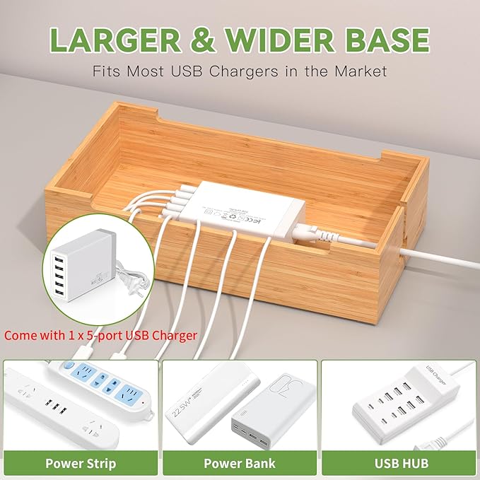 - What You Can Get: 1 x Pezin & Hulin Bamboo Charging Station, 1 x 5-Port USB Charger HUB & Cord, 6 x Short USB Cables (3pc Type-C, 2pc for lPhone & lPad, 1pc Android) for your daily use, 1 x user manual
