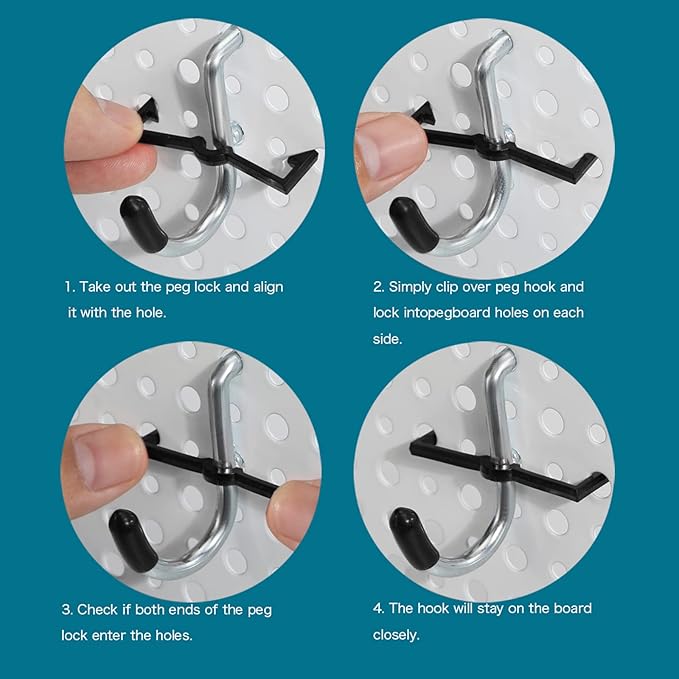- Three sizes of pegboard baskets and various hooks including peg locks, diagonal hooks, straight hooks, curved hooks, and multi tool racks.Various Pegboard hooks and pegboard baskets can help you organize garages, workbenches, workshops, kitchens, basements, tool sheds, factories, or warehouses. They are perfect for storing tools and keeping them safe and clean.