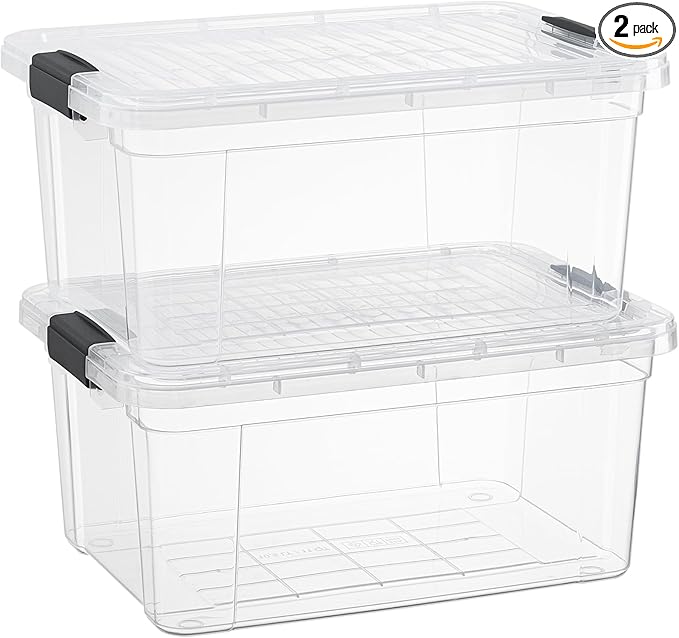 - CLEAR ORGANIZATION - Our plastic organizing totes are more transparent than most containers on the market. That's awesome because it lets you easily stay organized without opening your boxes or moving them to check whats inside. Clear bins are helpful for closet, garage, and shelf storage.