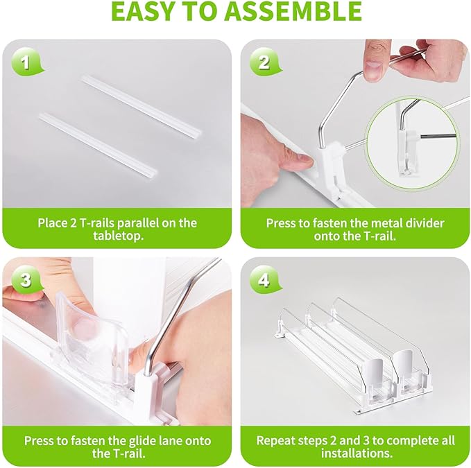 - [Built to Last] Crafted from safe materials, this drink organizer for fridge features rust-resistant metal partitions, a sturdy ABS pusher, and customizable horizontal rails for lasting durability