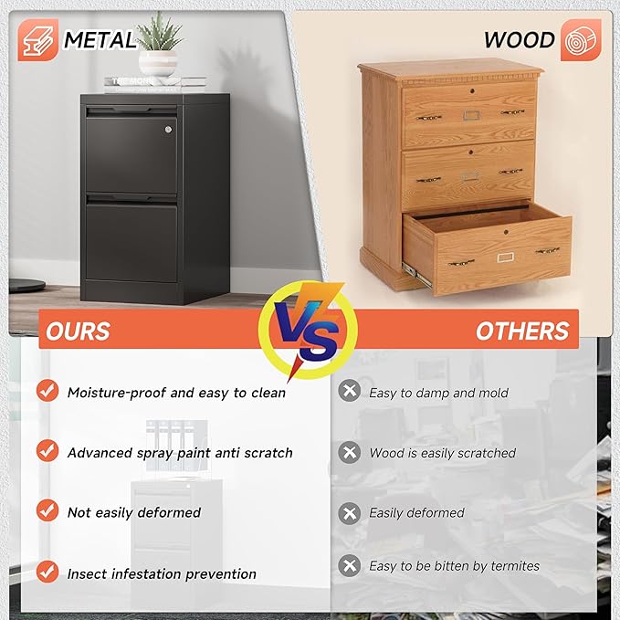 - ✅【Heavy Duty File Cabinets】Locking file cabinet with drawer is made of thick high-strength cold-rolled solid all steel material. Its solid construction and smooth finish ensure long-lasting durability, It is resistant to dents and warping, and powder-coated with a finish that prevents scratches and rust.
