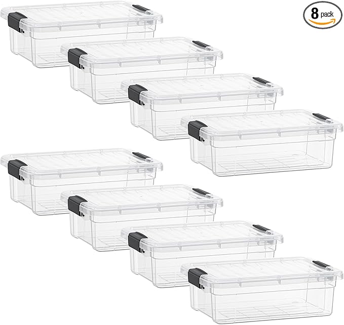 Superio Clear Storage Boxes with Lids, 2.3 Quart Plastic Container Bins for Organizing, Stackable Crates, BPA Free, Non Toxic, Odor Free, Organizers for Home, Office and Dorm, 8 Pack
